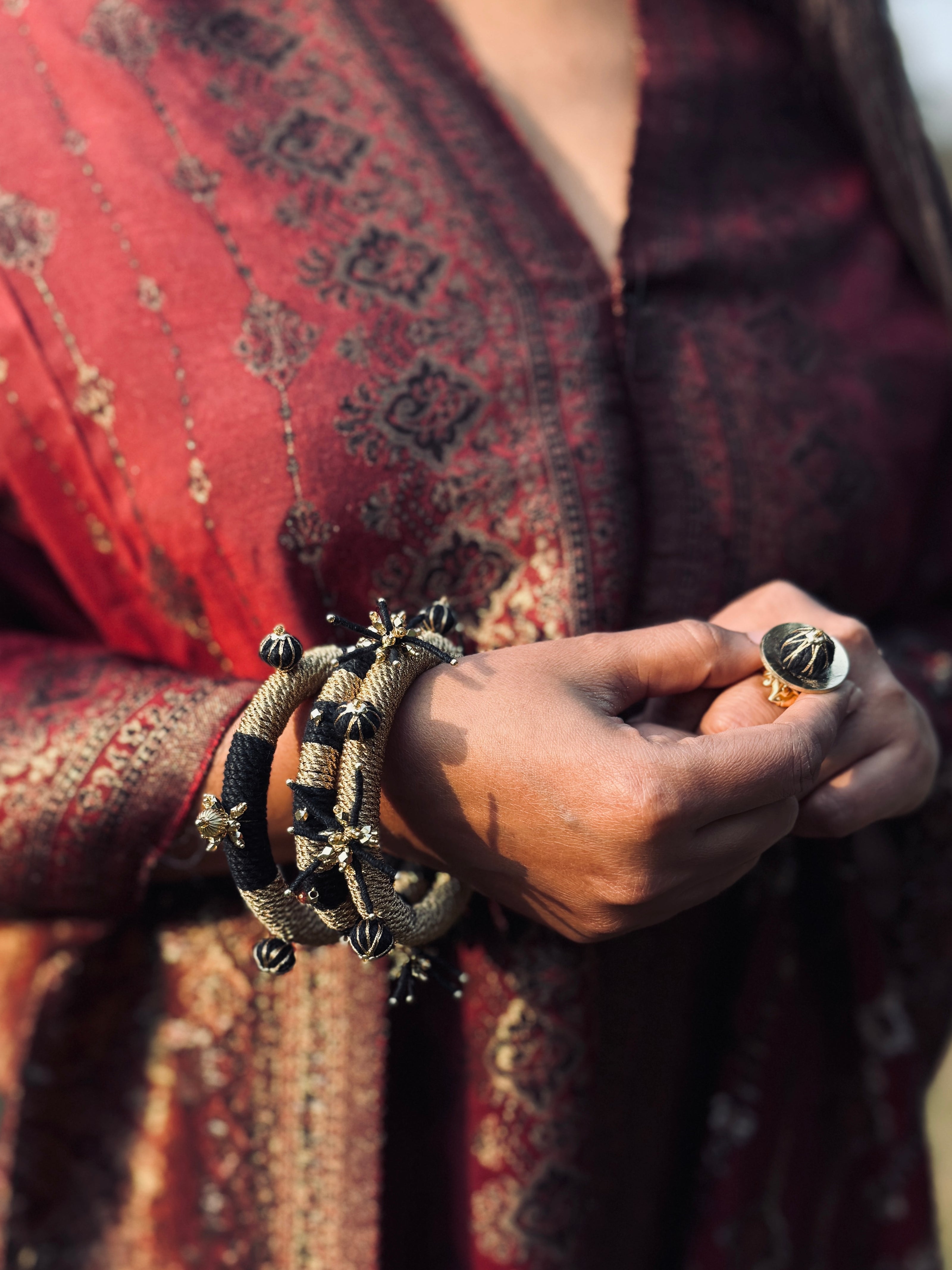 Handmade Black And Maroon Bun Stick