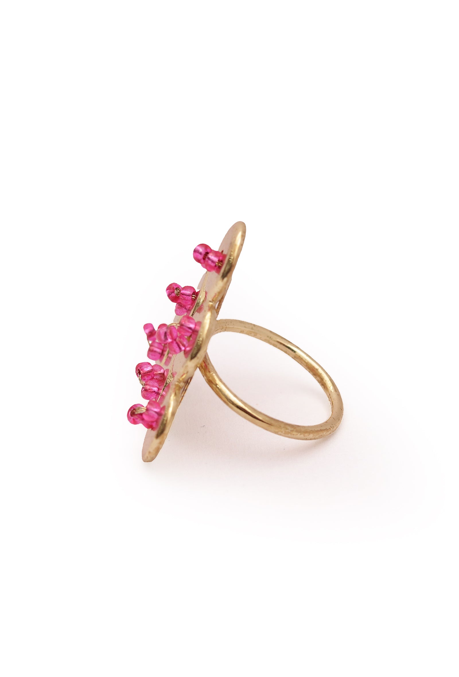 - Materials: Gold-plated brass, shimmering glass beads, cotton, zari thread