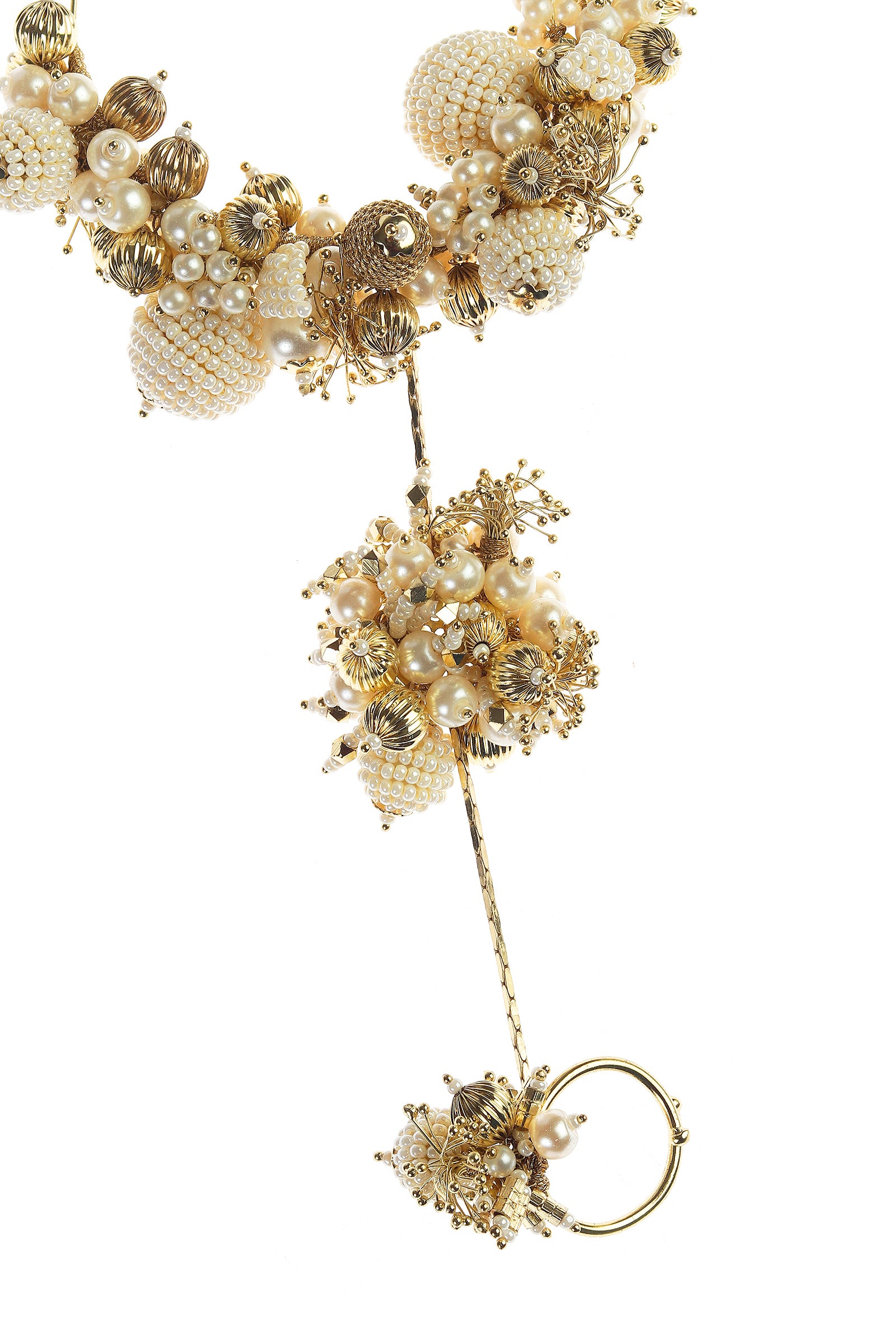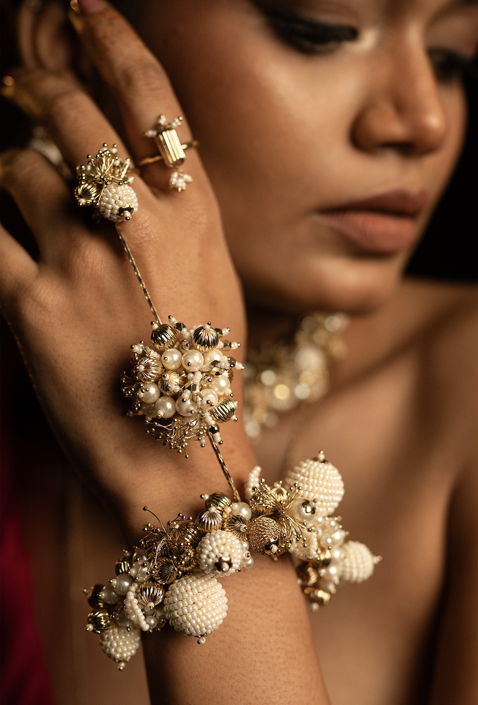 Delicate clusters bloom along the wrist and fingers, recalling sacred fields and ceremonial movement. Created for moments of joy, blessing, and transformation, this piece carries the essence of heritage while embracing a contemporary expression.