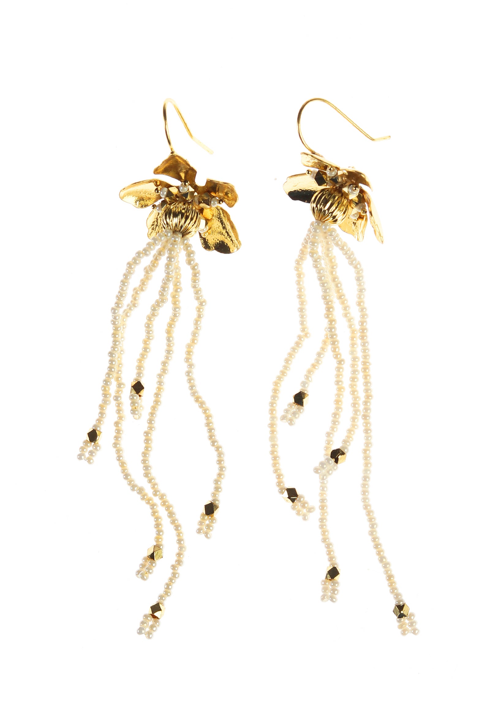 Elegant and whimsical, these dangler earrings are inspired by flower petals blossoming outward, with delicate pearls accentuating each intricate detail. The design captures natural movement and grace, creating a soft, floral rhythm that adds dimension and sophistication to any look.
