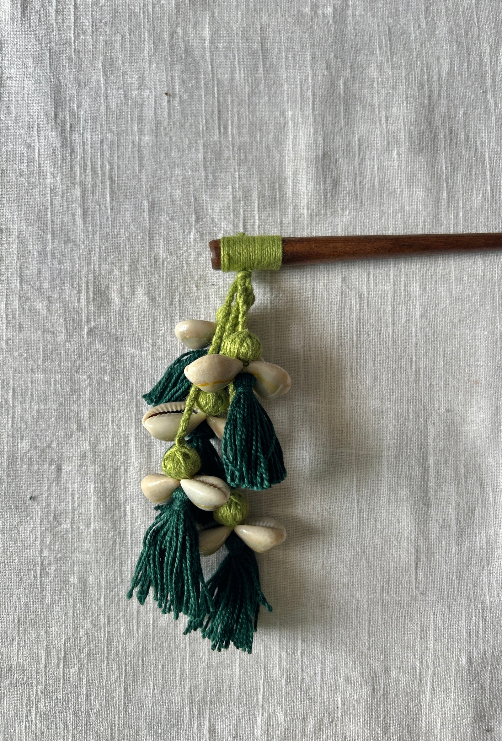 - Material used: Woods, Cotton Thread, Shells, Crochet mirror work